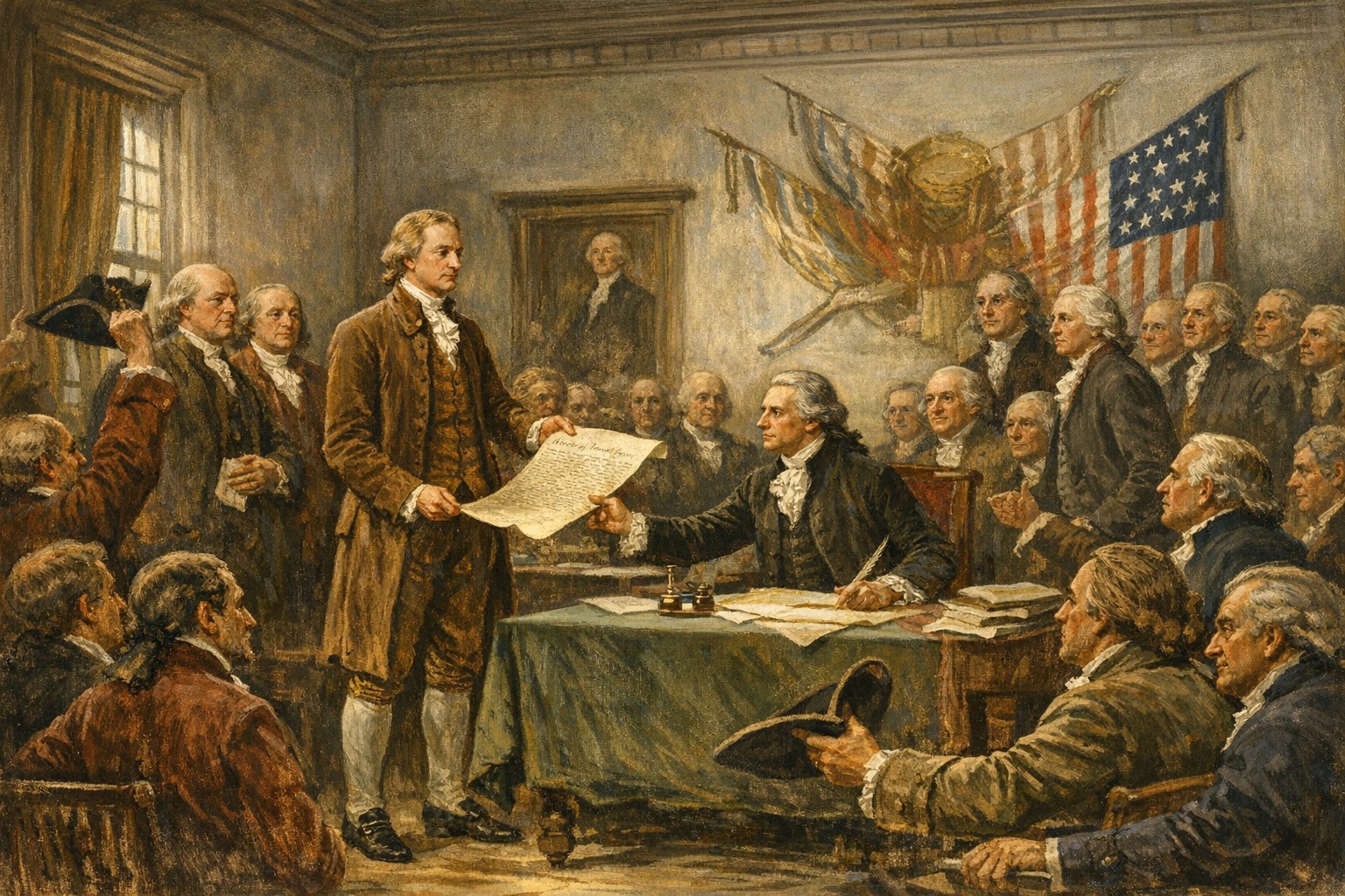 Tensiunile au crescut odată cu „Stamp Act” și „Tea Act”. Celebrul Boston Tea Party a devenit simbolul rezistenței. În 1776, Congresul Continental a adoptat Declarația de Independență, redactată de Thomas Jefferson, proclamând că toți oamenii sunt egali și au drepturi naturale fundamentale.